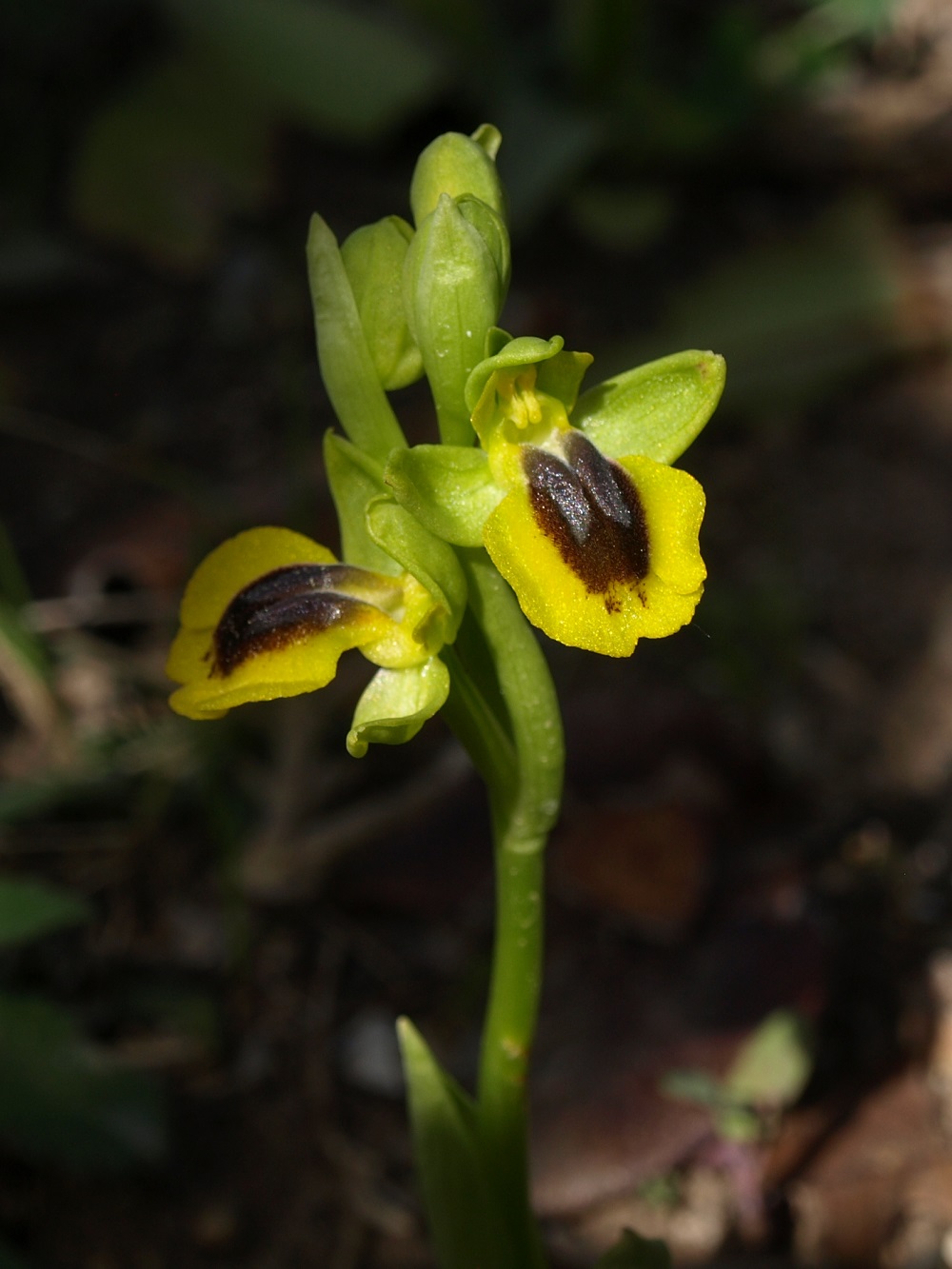 Ophrys lutea, certains pieds portent jusqu'à 8 fleurs contre 4 ou 5 habituellement.
