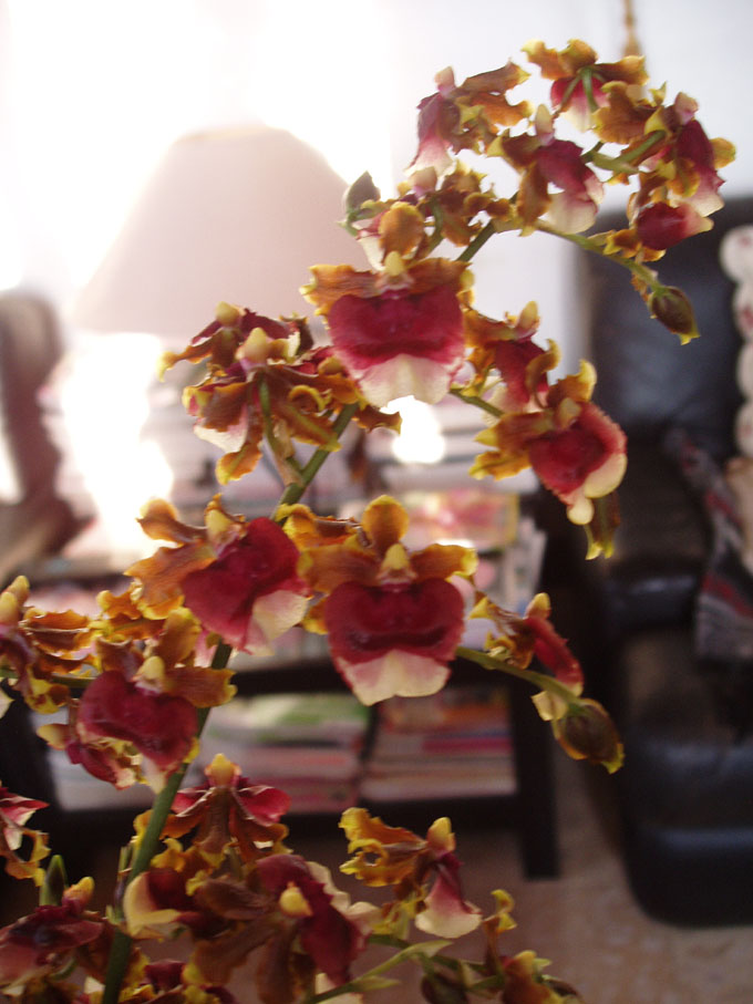 waaaah cachounette , ton salon , trop cool ! j'ai un cambria qui a trois hampes en fleurs en ce moment , si j'y pense je vais faire une photo , mais il ne faut pas que j'oublie , le temps de descendre l'escalier , et hop! envolé !