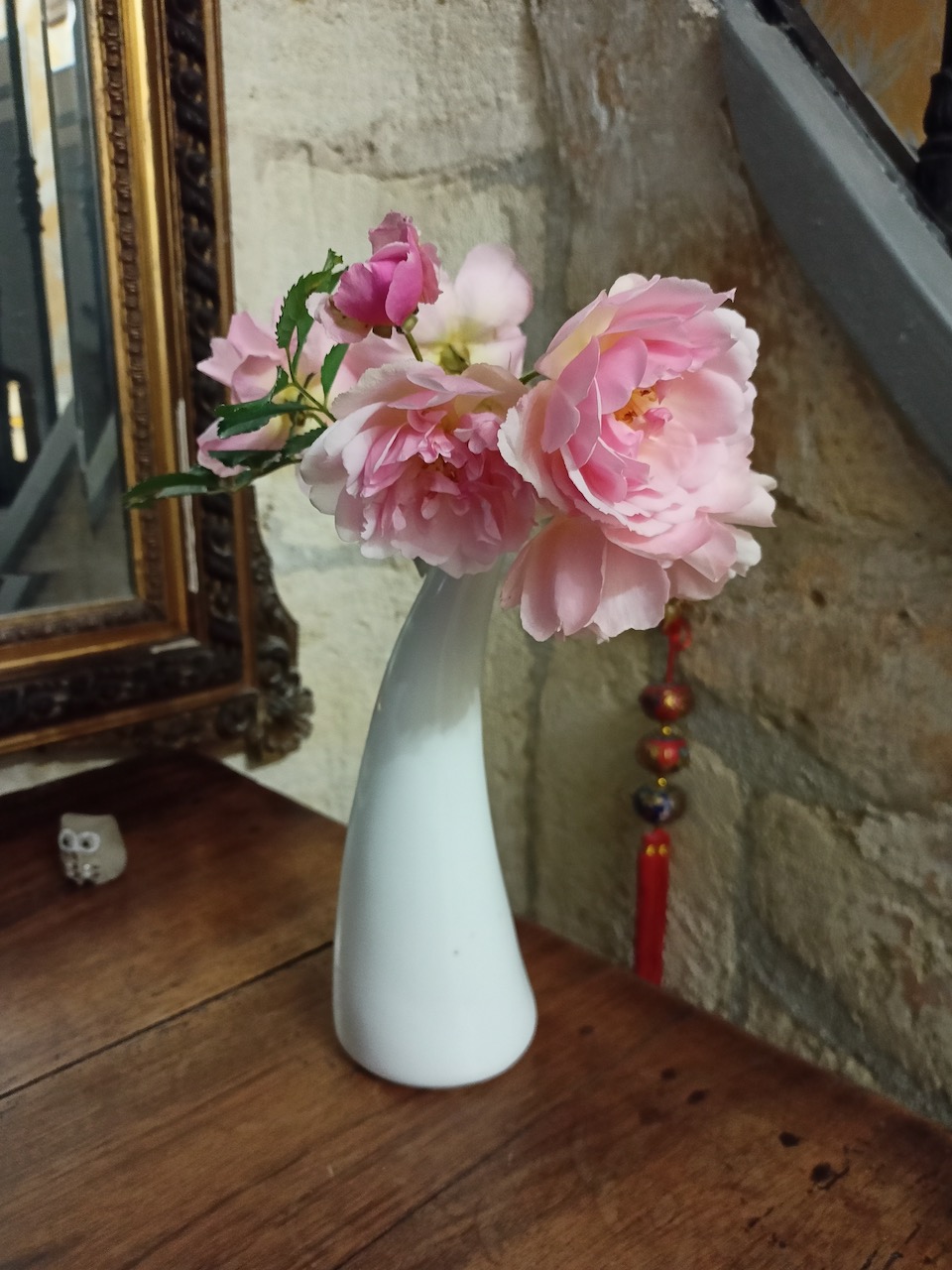 pour doudou et k6 , un petit bouquet de roses de mon jardin