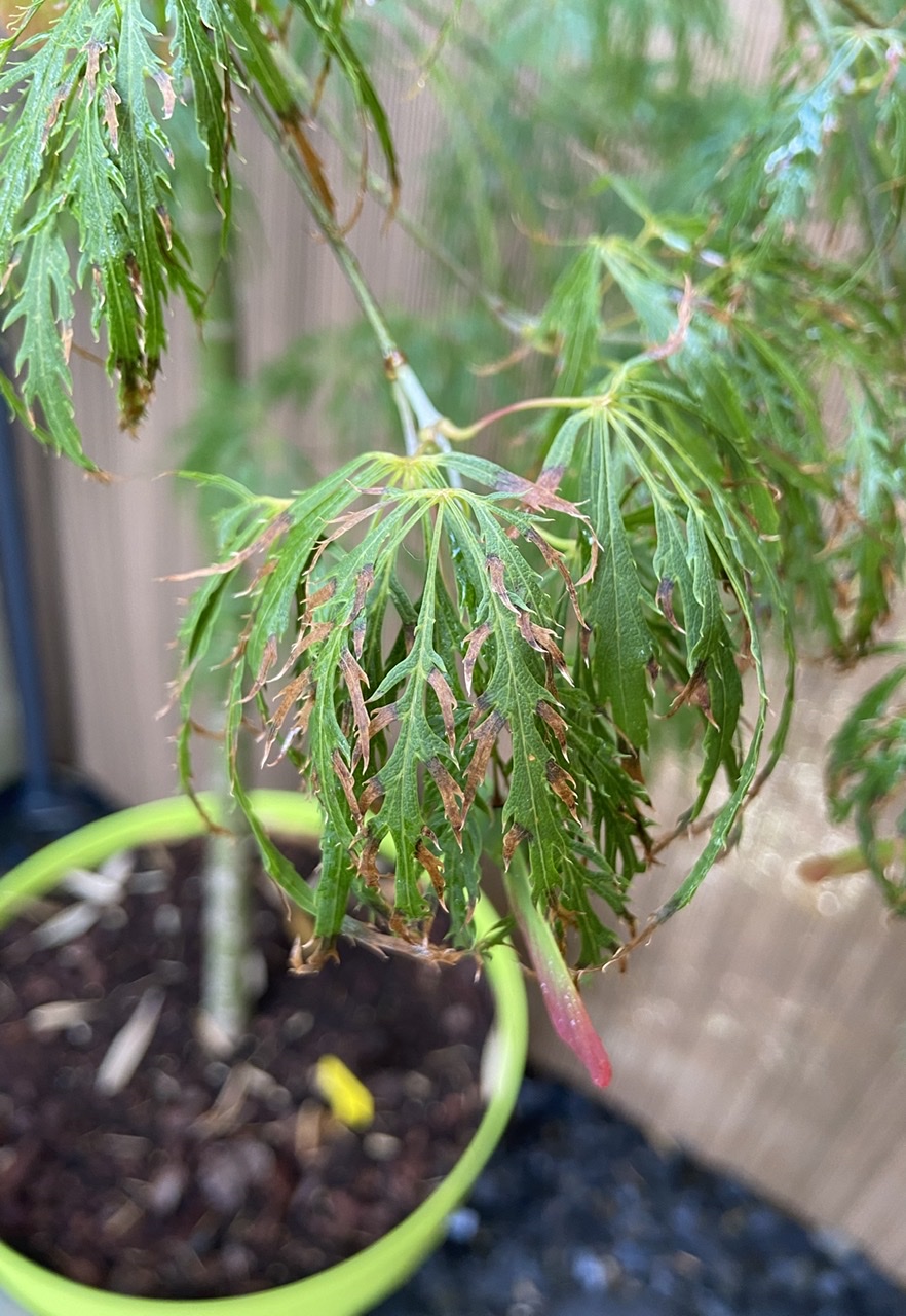 Pour info: tous mes érables en pots viennent d’être déplacés à mi-ombre. Je les ai arrosés deux fois cette semaine.
