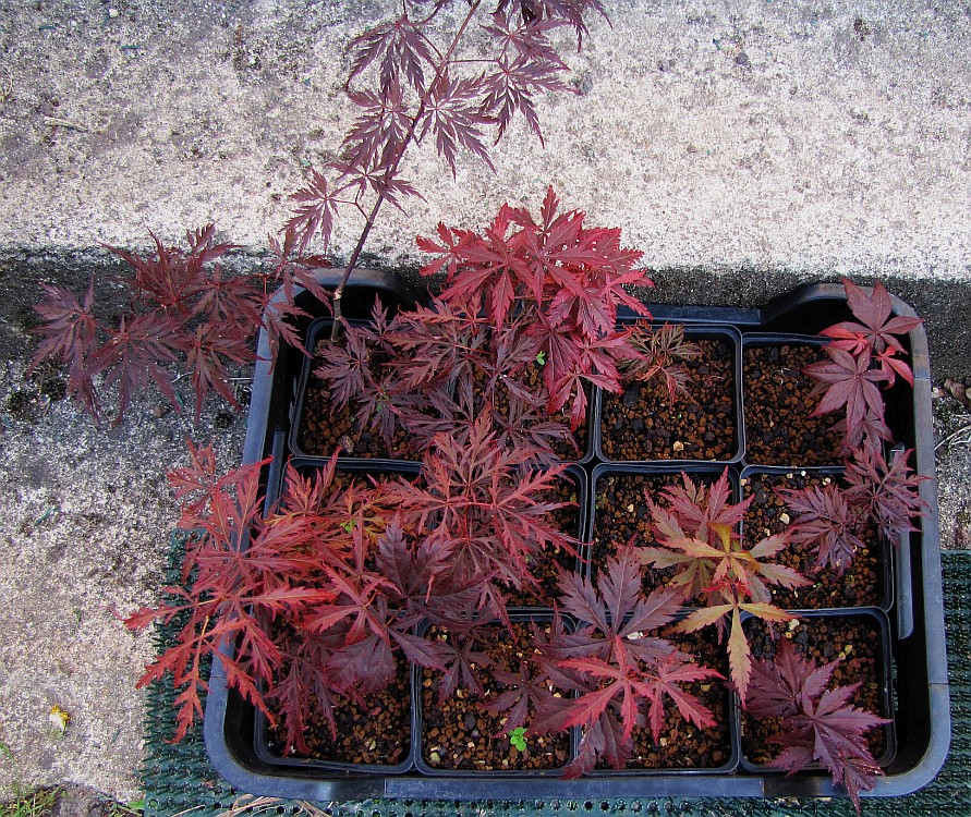 2/ graines collectées sur un 'Atropurpureum dissectum', sauf celui dans le coin en haut à gauche, et l'arbre lui-même (acheté sans étiquette) :