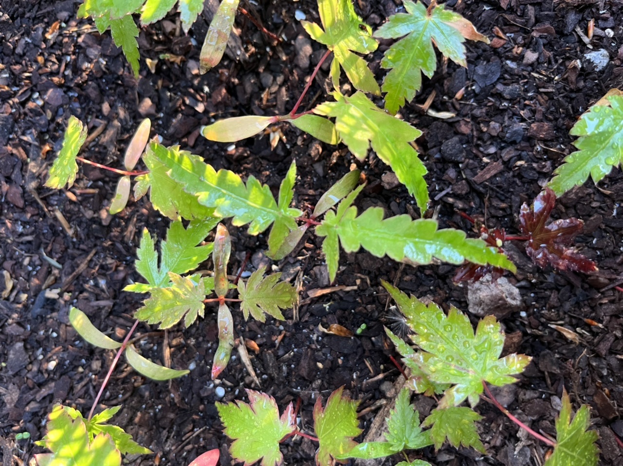 Ici ça continue, j’ai mis en godet individuel mon bac d’Ozakazuki, je ne m’en rendais pas compte mais il y en avait plus de 100 là dedans. Je pense que c’était nécessaire (et ça continue de pousser dans le bac). Celui là a des feuilles très particulières, c’est vraiment un érable ? J’espère qu’il va garder sa particularité