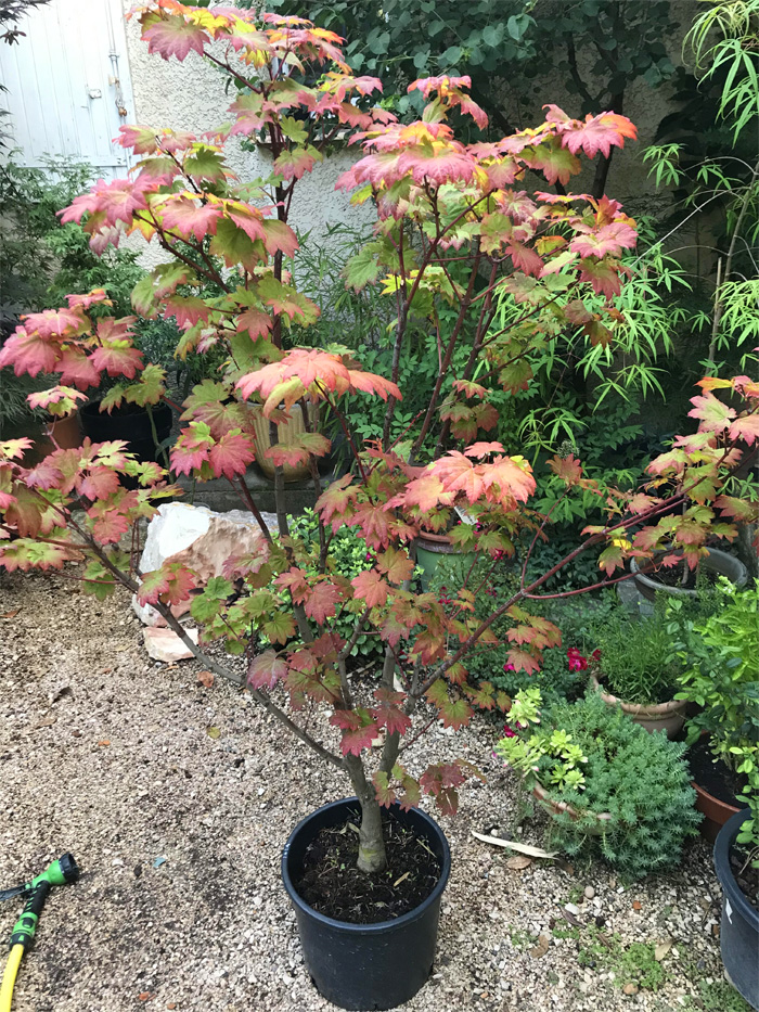 Ça y est tous mes érables en pot (sauf Skeeter) ont repris leur place d'été sous l'albizzia