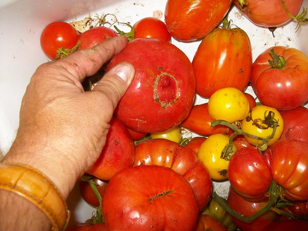 par l'ombilic ( pour un oeil exercé ) , l'on voit ce qu'il y a de bien ou pas . Cela me permet notamment de sélectionner une tomate sur une variété d'un voisin, que l'on veut conserver.