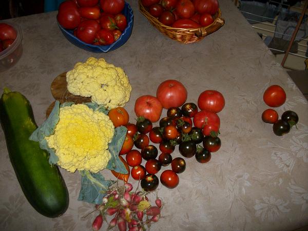 ce matin, 10.9 kg. Axel en est très fier!Il est vrai que sans lui, je n'aurais pu tout faire. Au vu du résultat, je le pardonne d'avoir tout mélangé lors des semis.