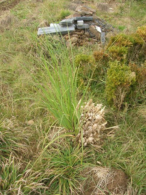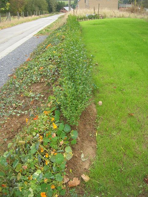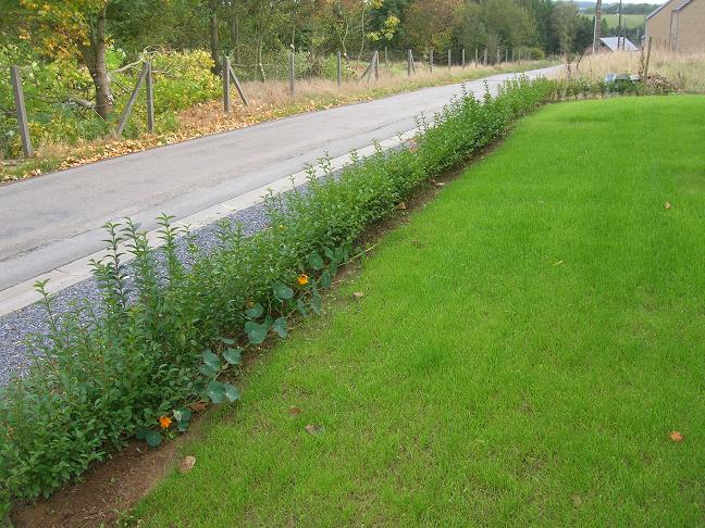 Voici la haie encore basse qui fait une limite au-dessus du talus...Celui-ci était couvert de rumex, de chiendent et de liseron...J'en viens tout doucement à bout...