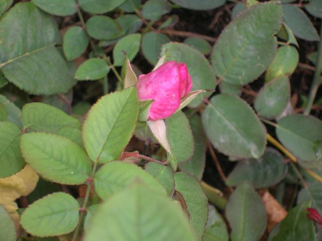 Zéphirine Drouin fait un bouton...mais je doute de le voir s'épanouir, car la gelée était plus forte cette nuit...