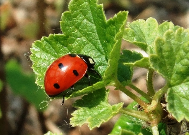 Une jolie coccinelle qui pique-nique sur les groseillers