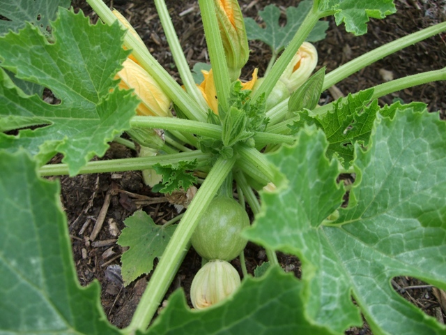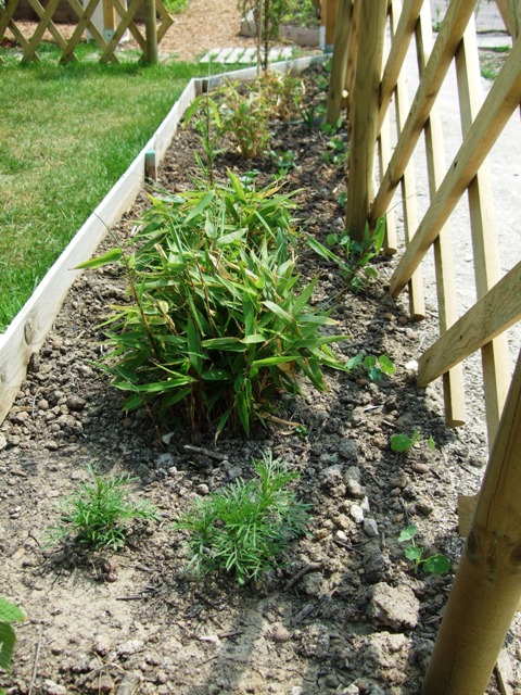 Framboisiers, menthe, persil,2 pâtissons et tout au fond l'ail