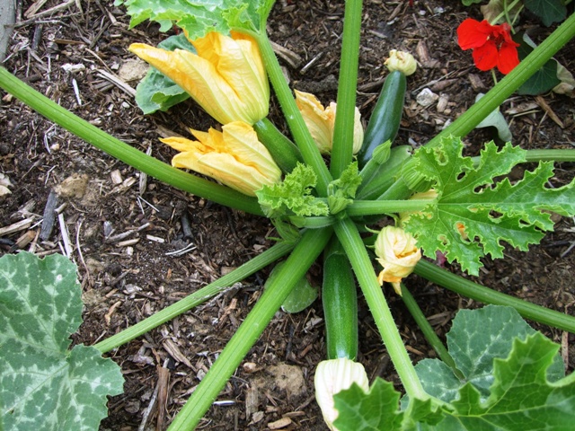 3 courgettes vertes des maraichers et 2 rondes de Nice et en attendant qu'elles occupent l'espace, 2 rangs de radis et quelques batavias