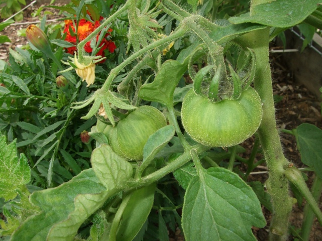 oui, ça pousse bien mais si le soleil ne daigne pas se montrer rapidement, c'est pas prêt de mûrir :| certaines tomates sont déjà bien avancées et j'ai vraiment hâte de goûter les premières.