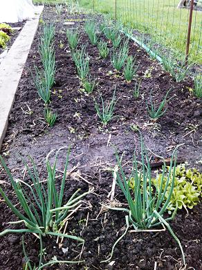 voici des infos sur mes oignons ,au premier plan ,ceux laisser en terre ayant passés l'hiver à - 17 C°, et la planche repiquée en mars!