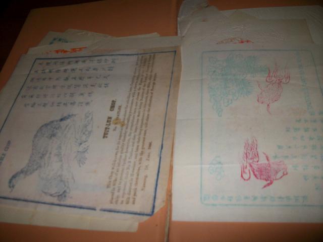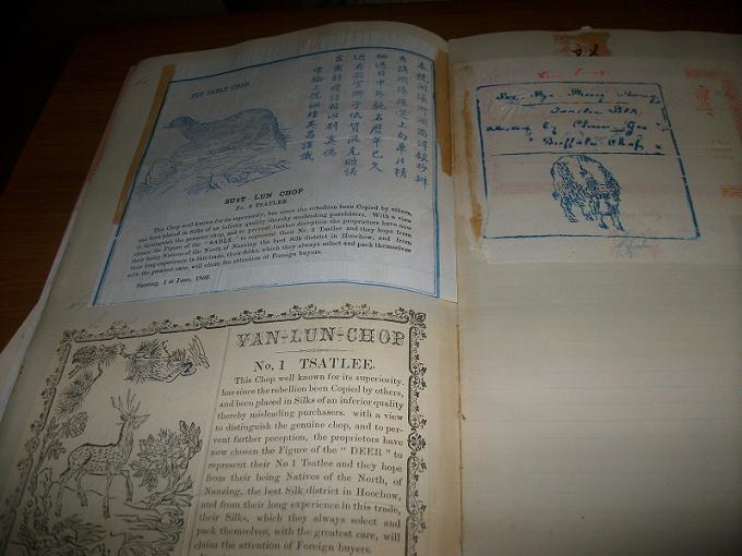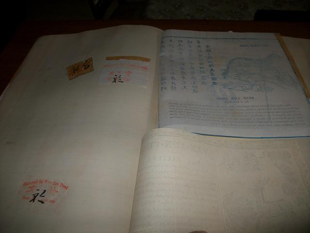 pour le livre chinois, ce sont des cartes de visites de commerçants. un "annuaire " en quelque sorte.