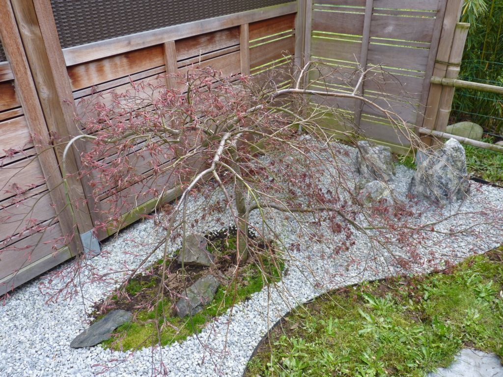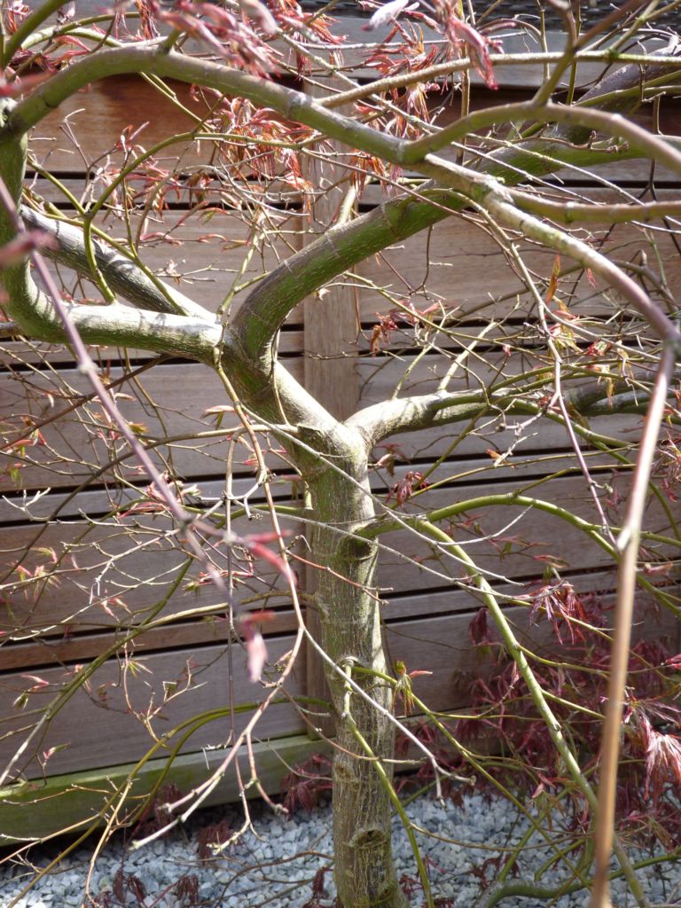 Les masses de feuillages qui se forment naturellement sur les Erables de plusieurs années, il faut souligner leur dessin, quelques coups de ciseaux suffisent en mai . On aère entre les étages de branches. Et pour ton 'pleureur' en pot il ne faut pas laisser retomber jusqu'au sol, on limite un peu (en fonction de la force de la branche).