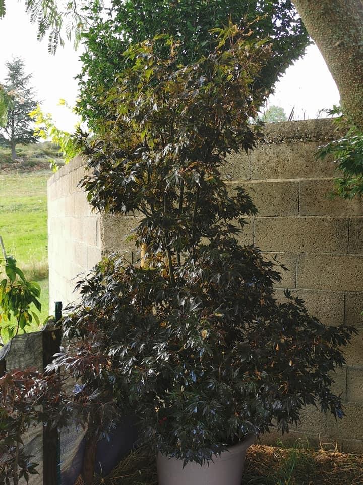 1°photo. Sur la base du tronc je ne vois aucune greffe. Si tu confirmes, ton érable serait une bouture, ce qui le rend plus sensible à l’arrosage.