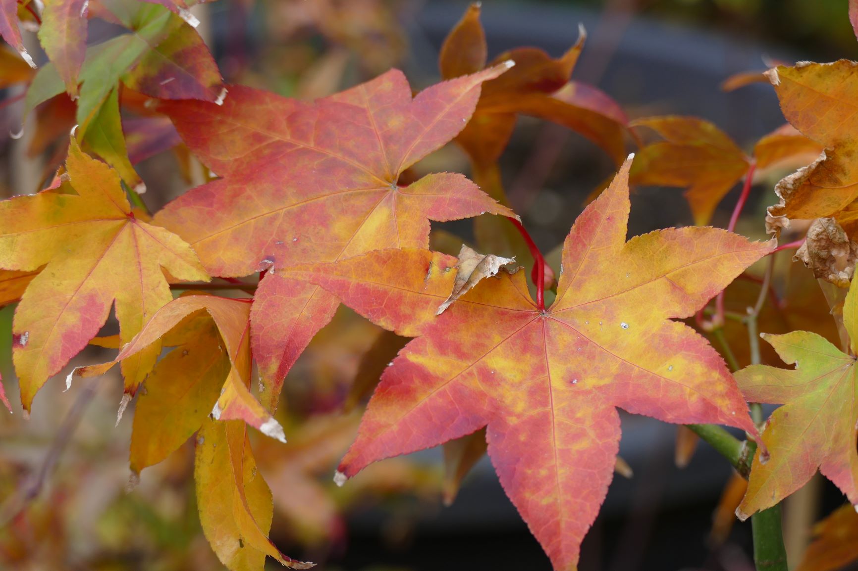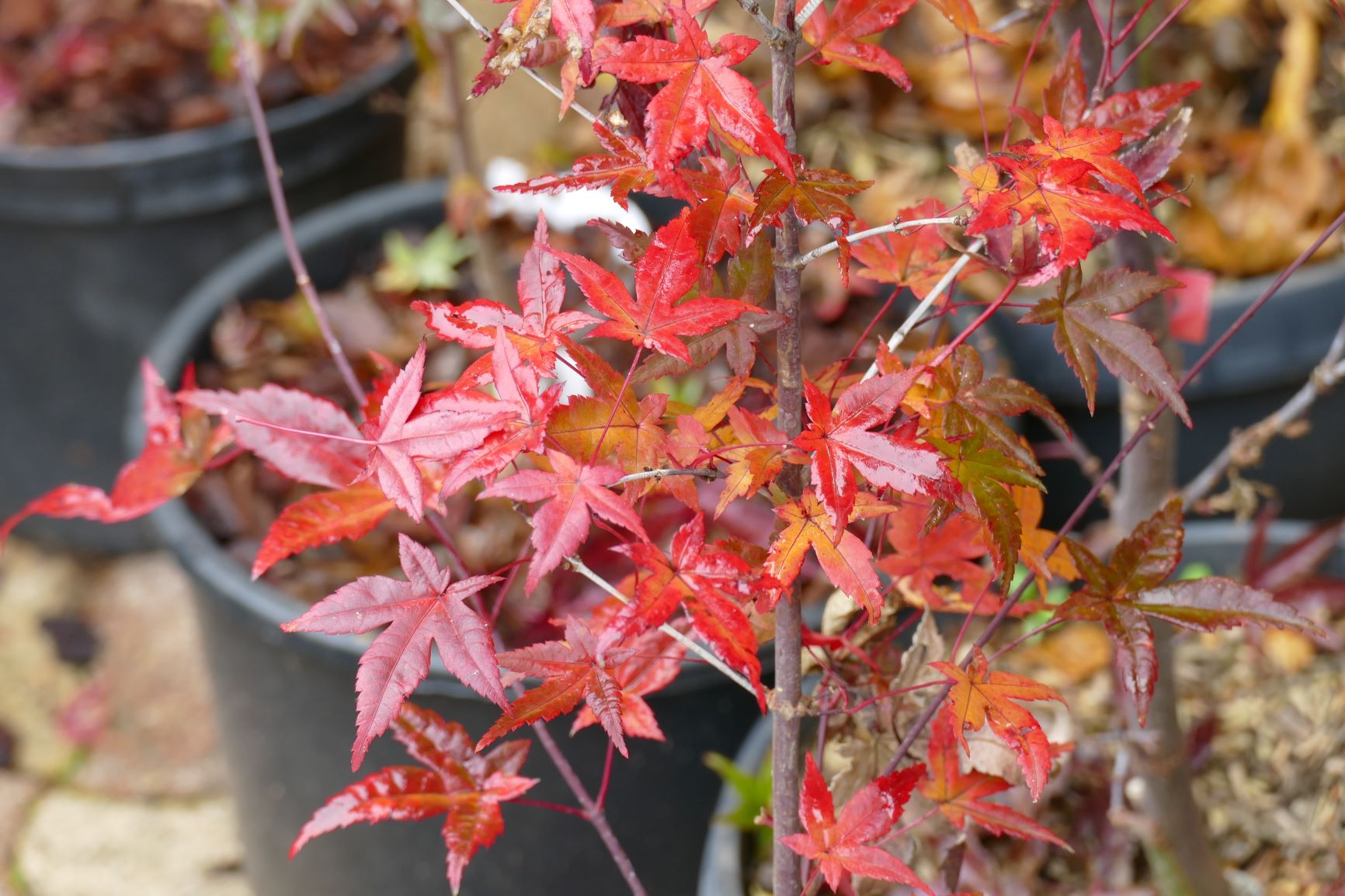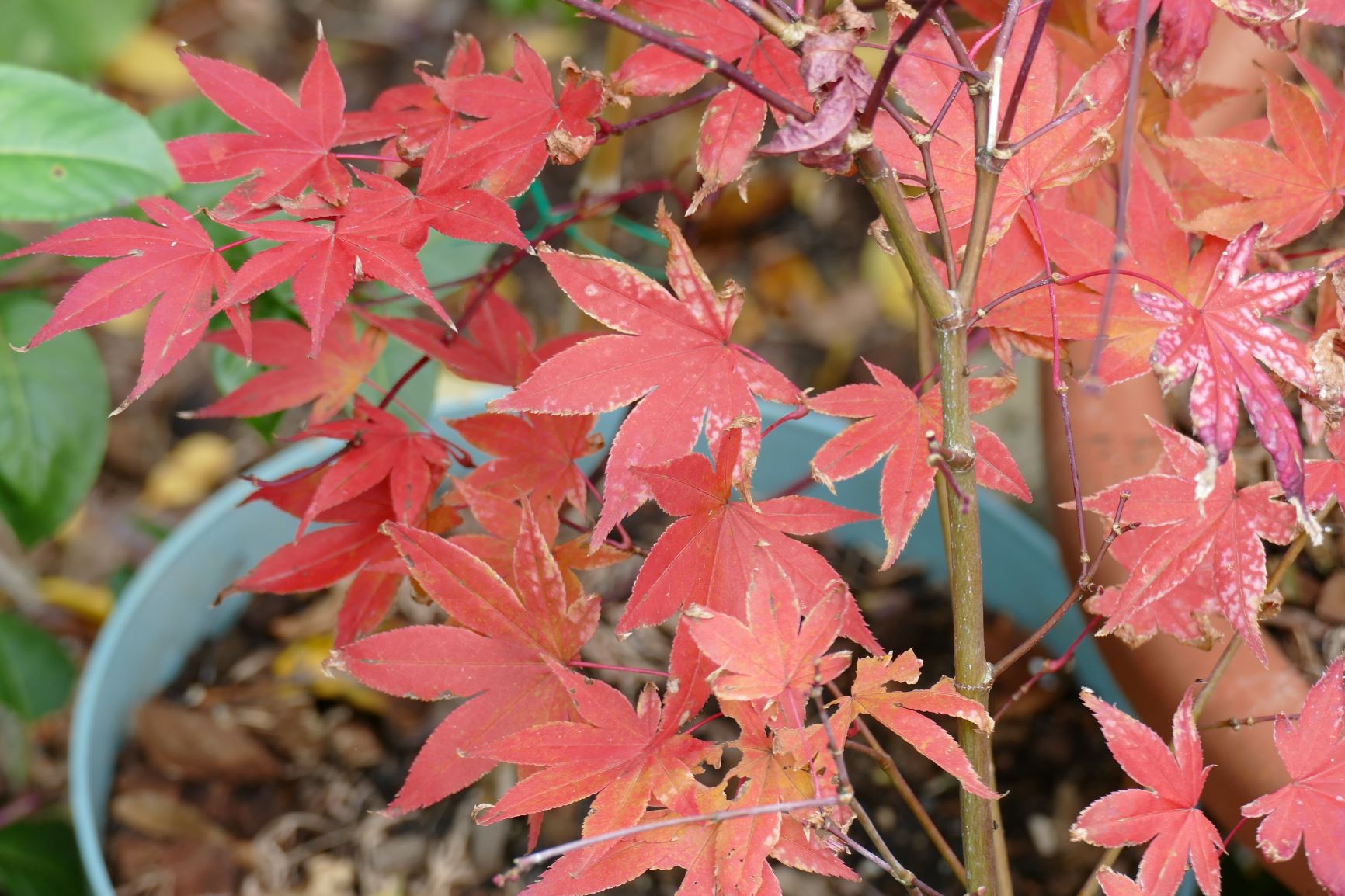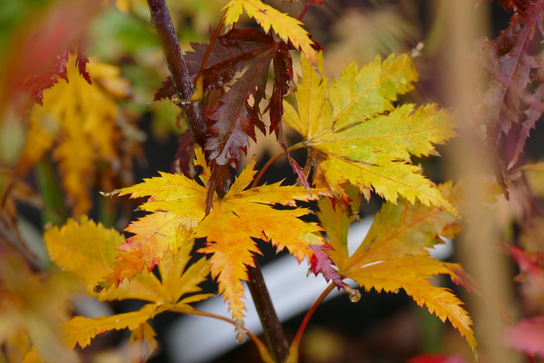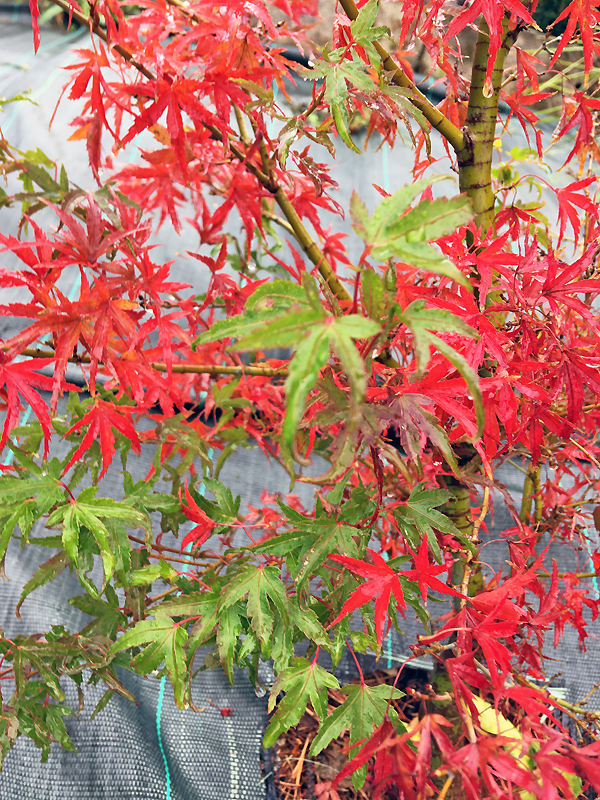 Ici il ne reste plus quasi que les Bloodgood qui ont encore des feuilles.... Il se colorent à peine. Est ce une particularité du cultivar cette coloration tardive ?