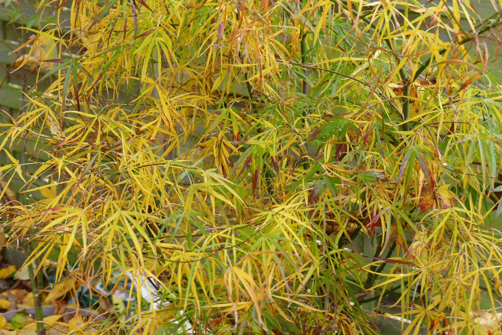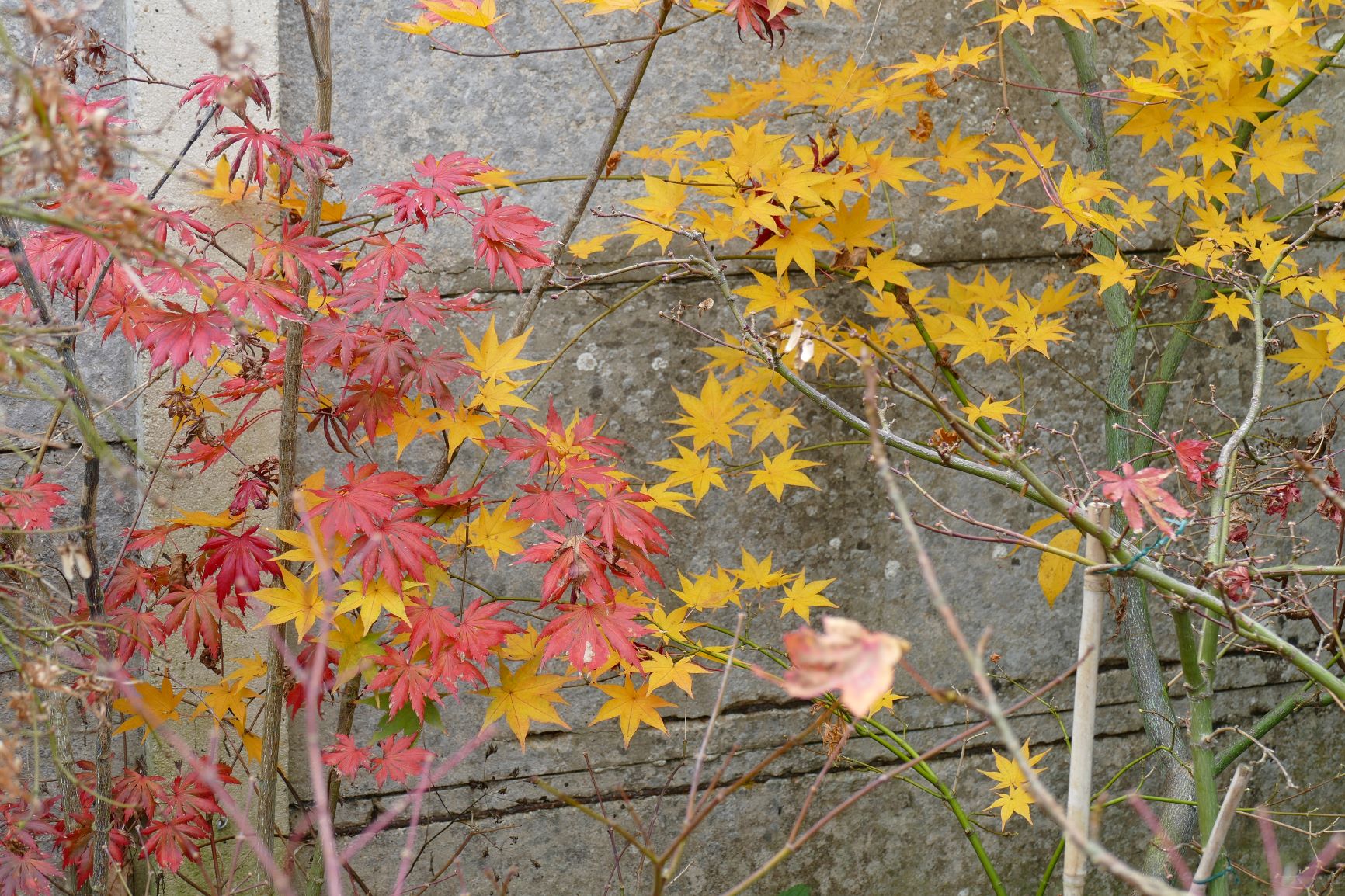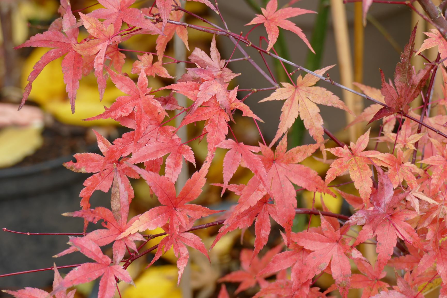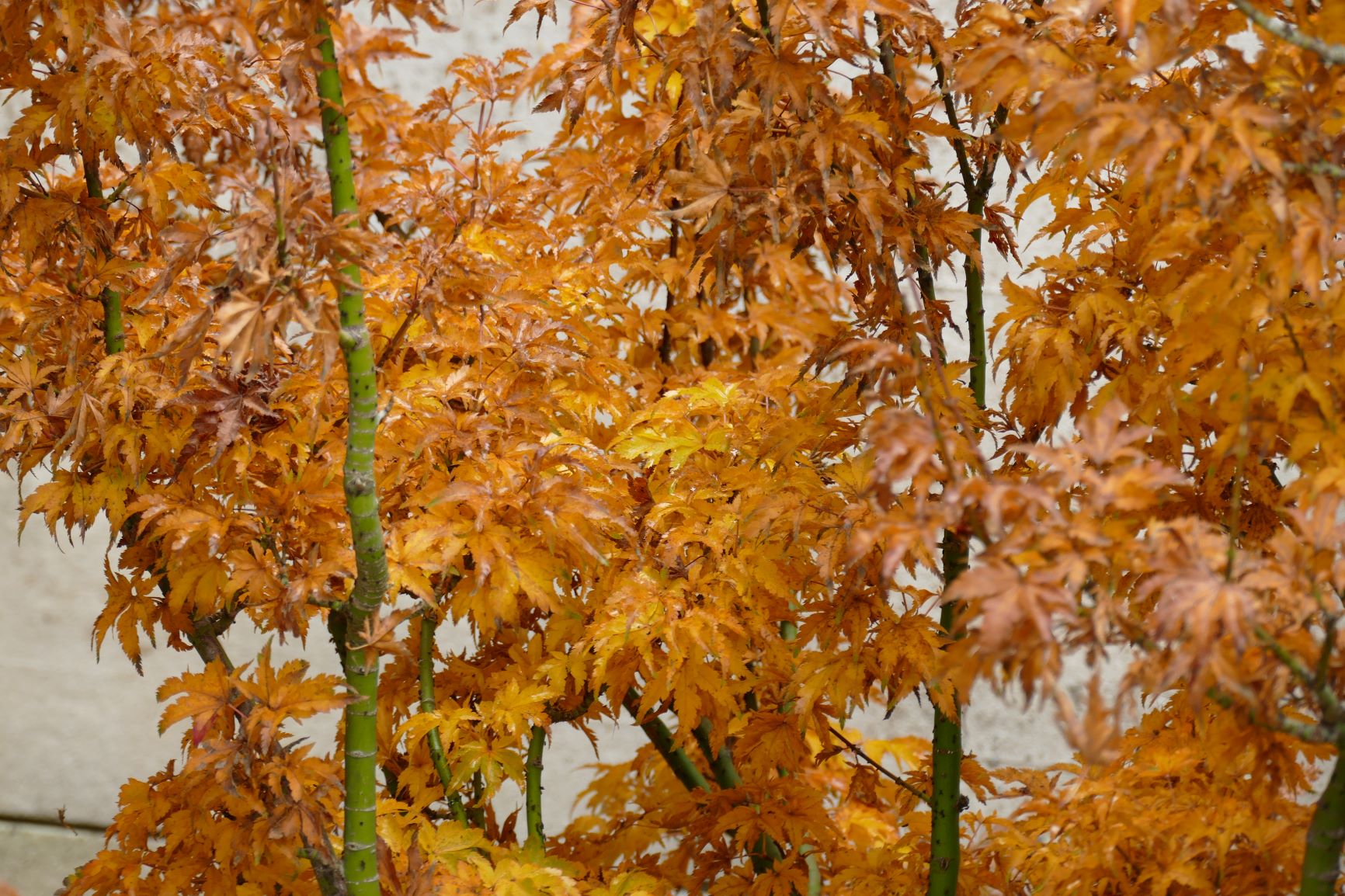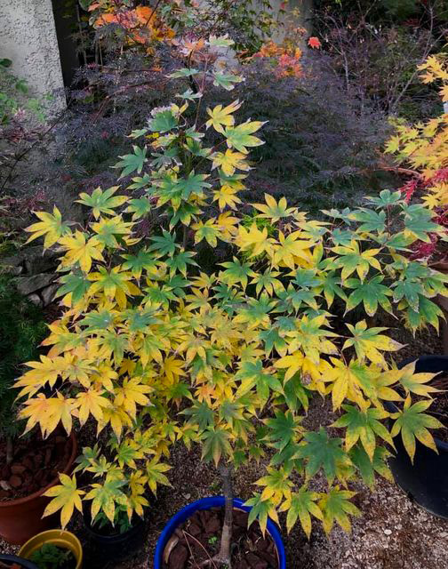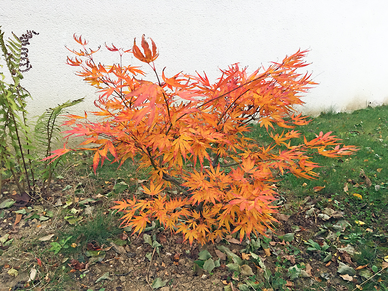 palmatum de graine, d'habitude jaune il est plutôt orange cette année.