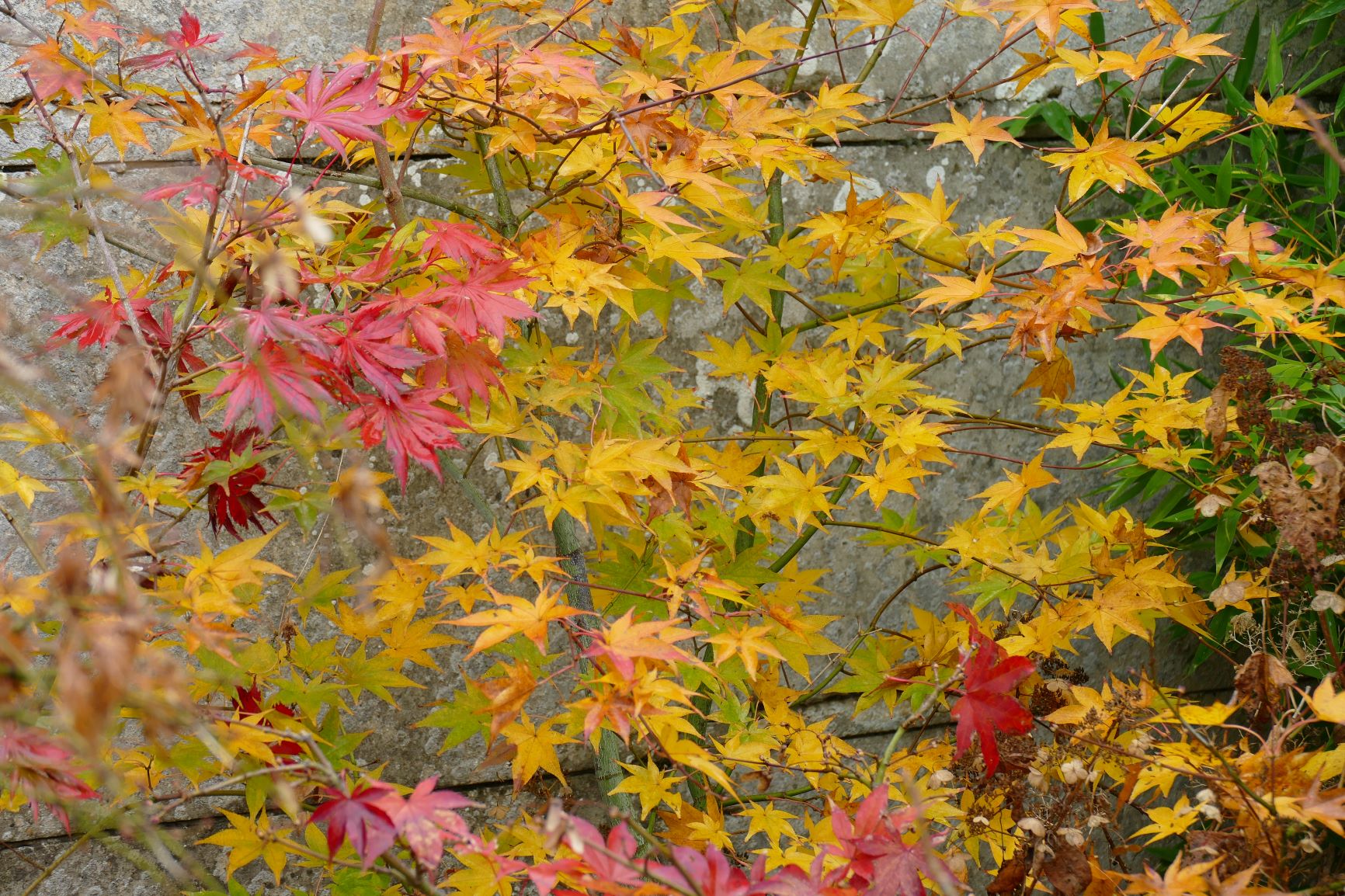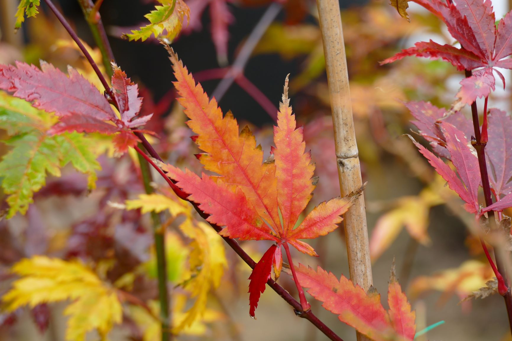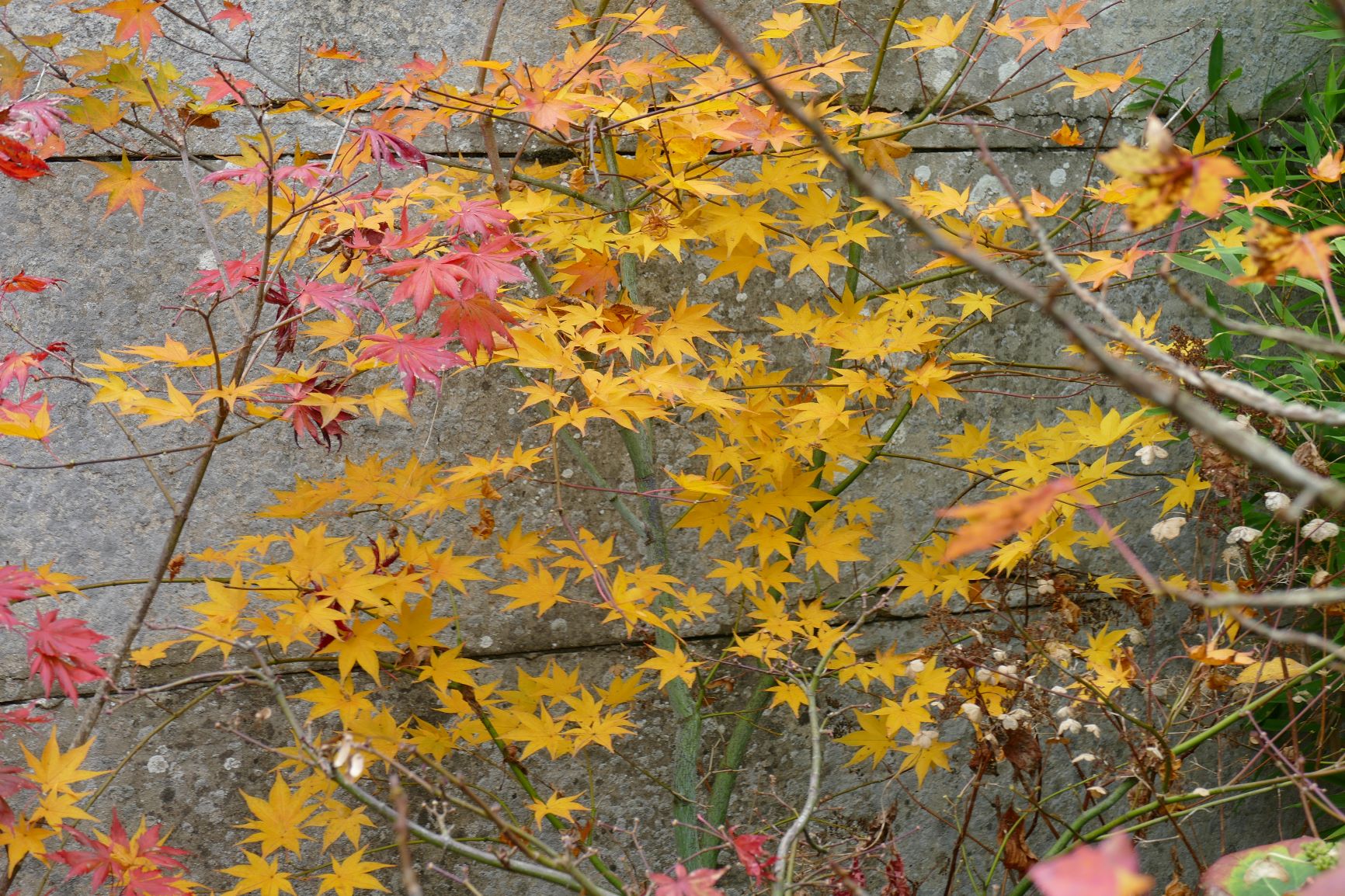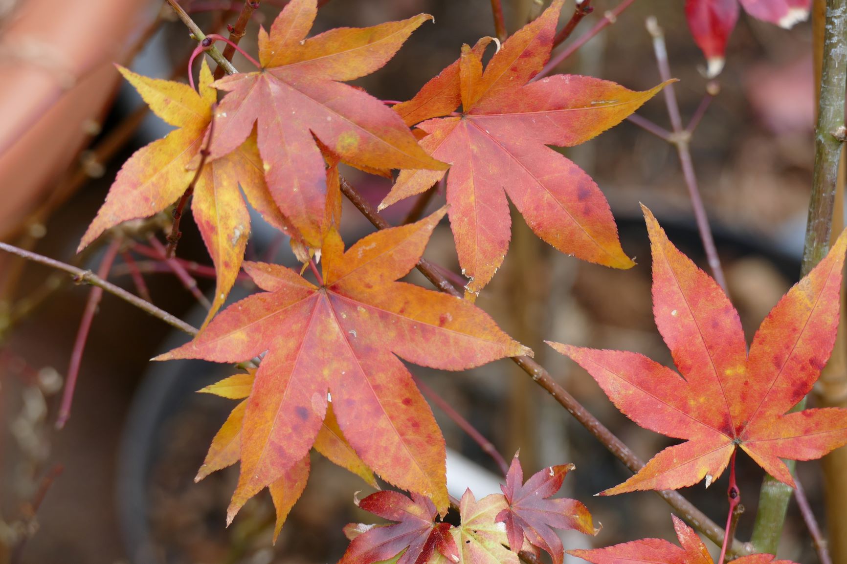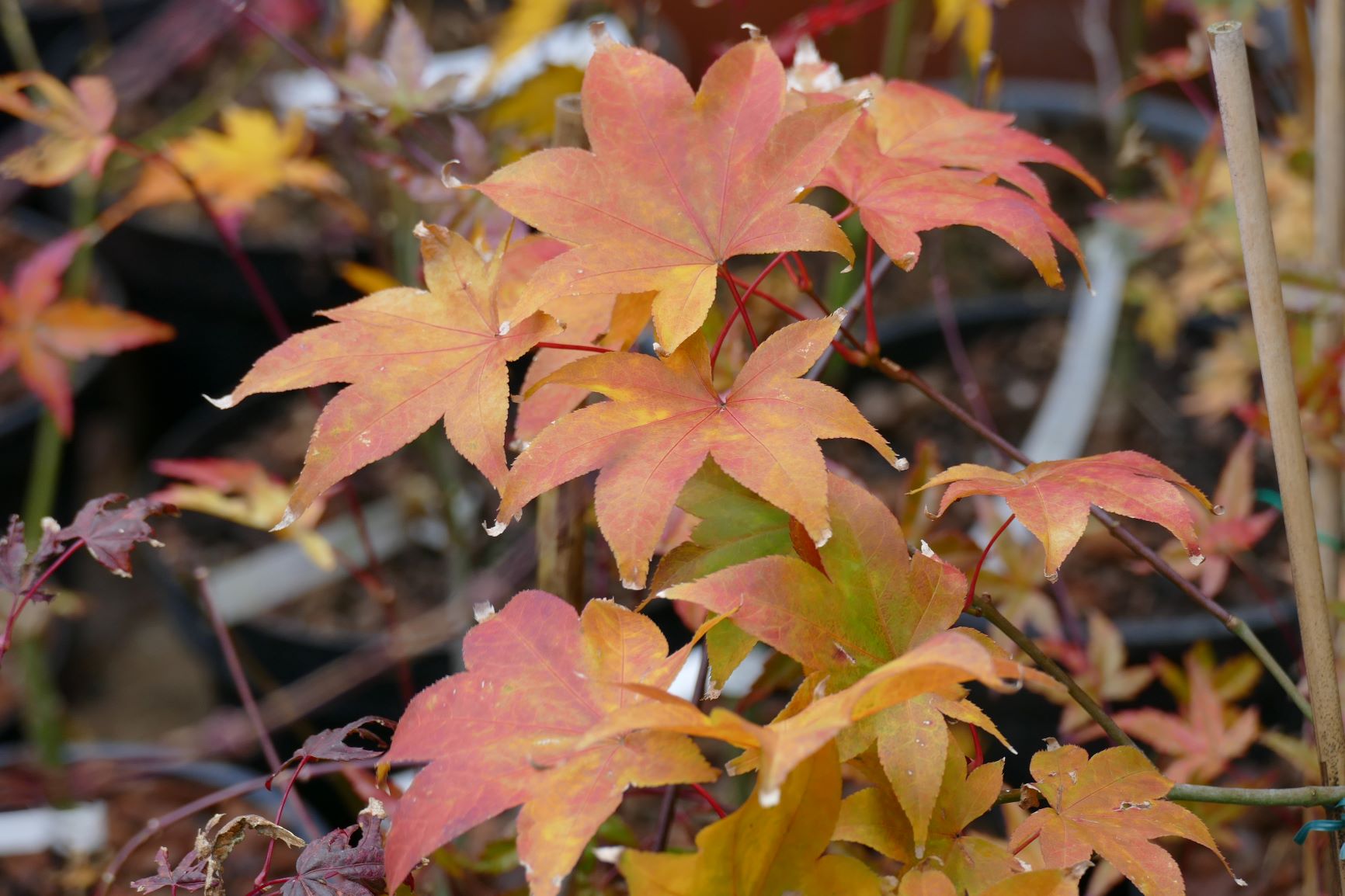 palmatum de graine, d'habitude jaune il est plutôt orange cette année.