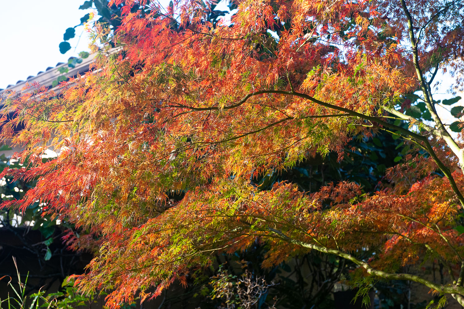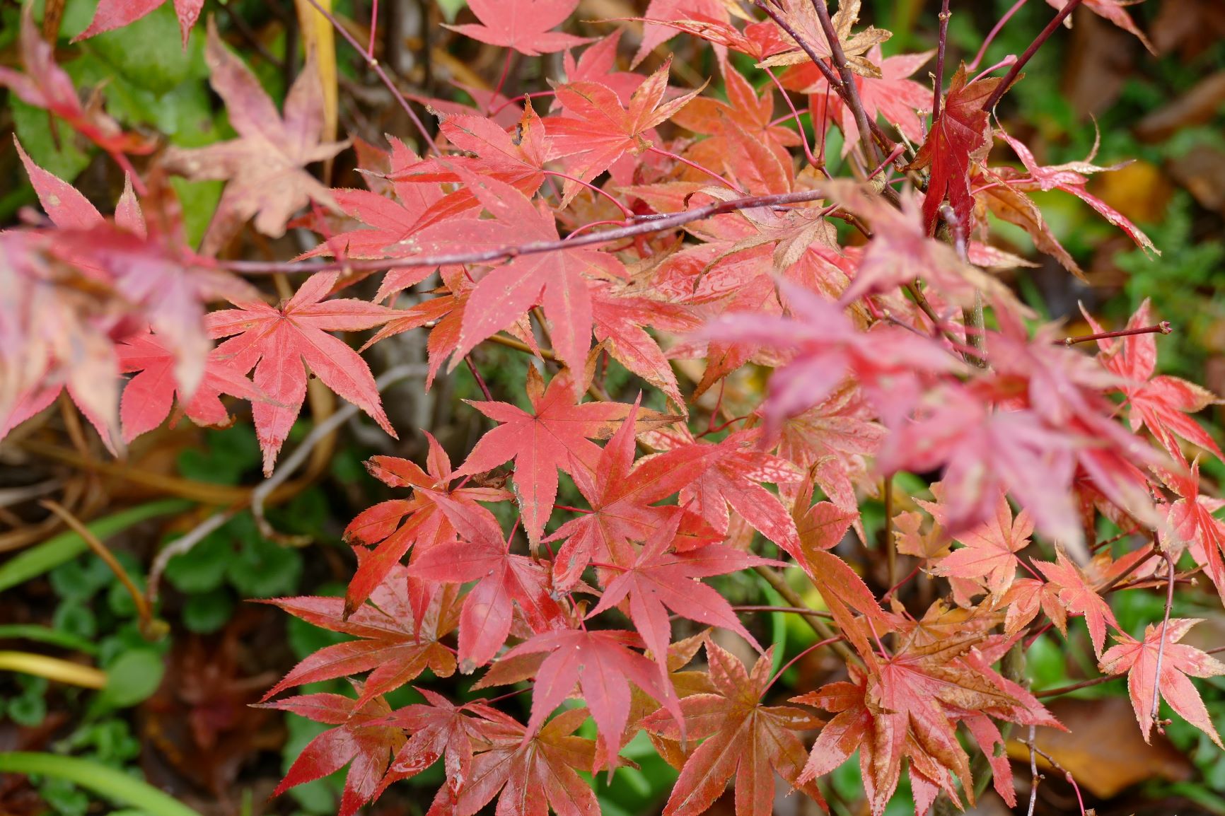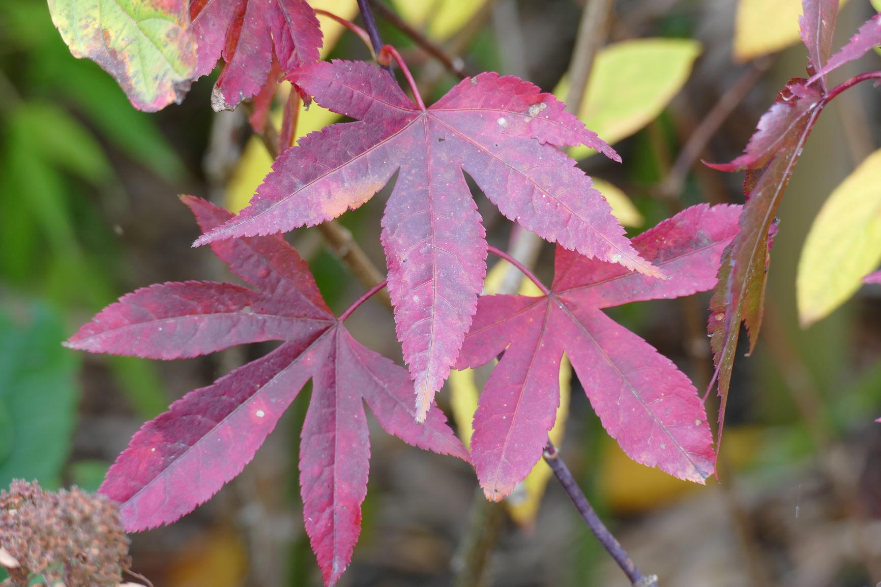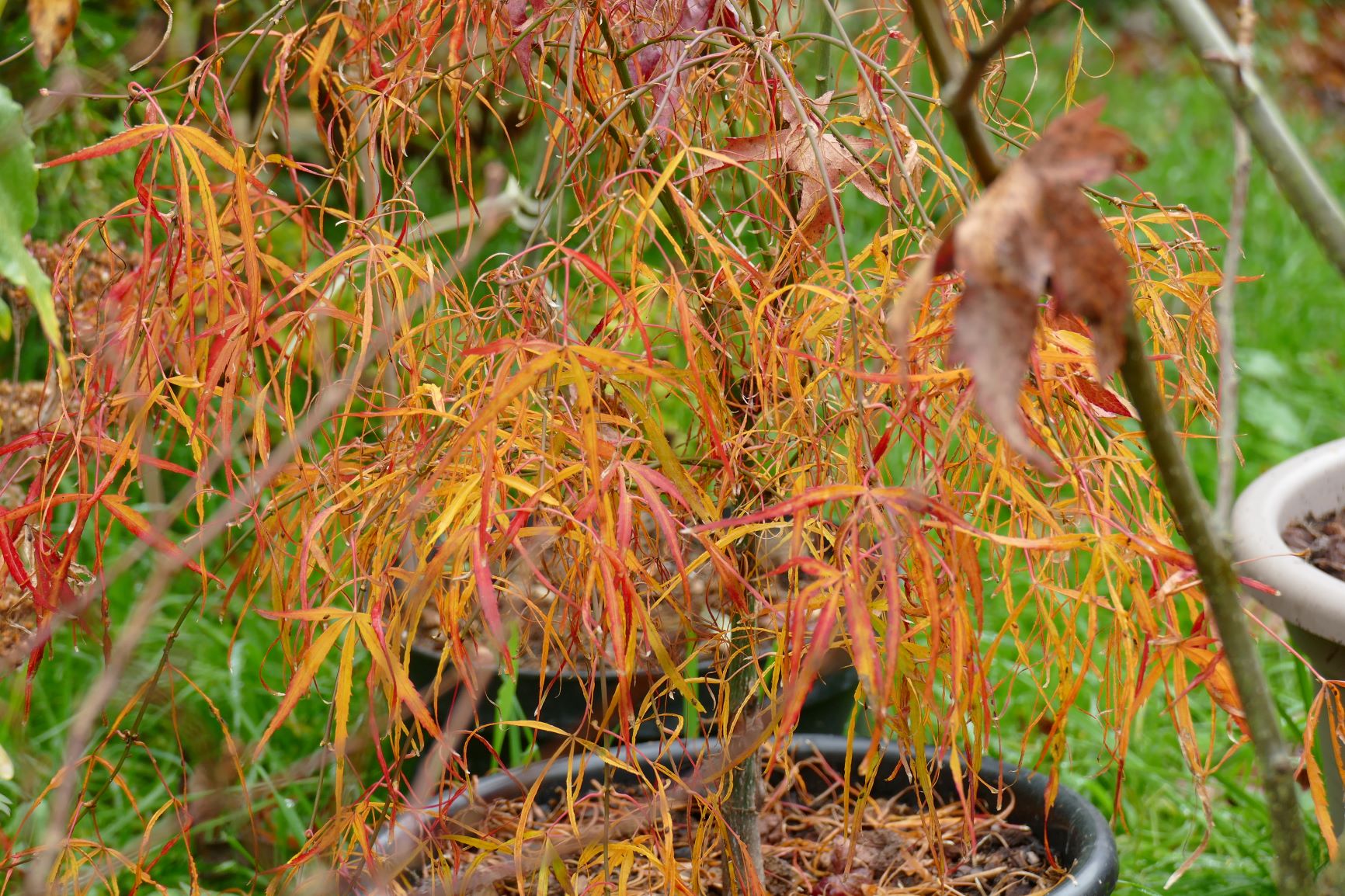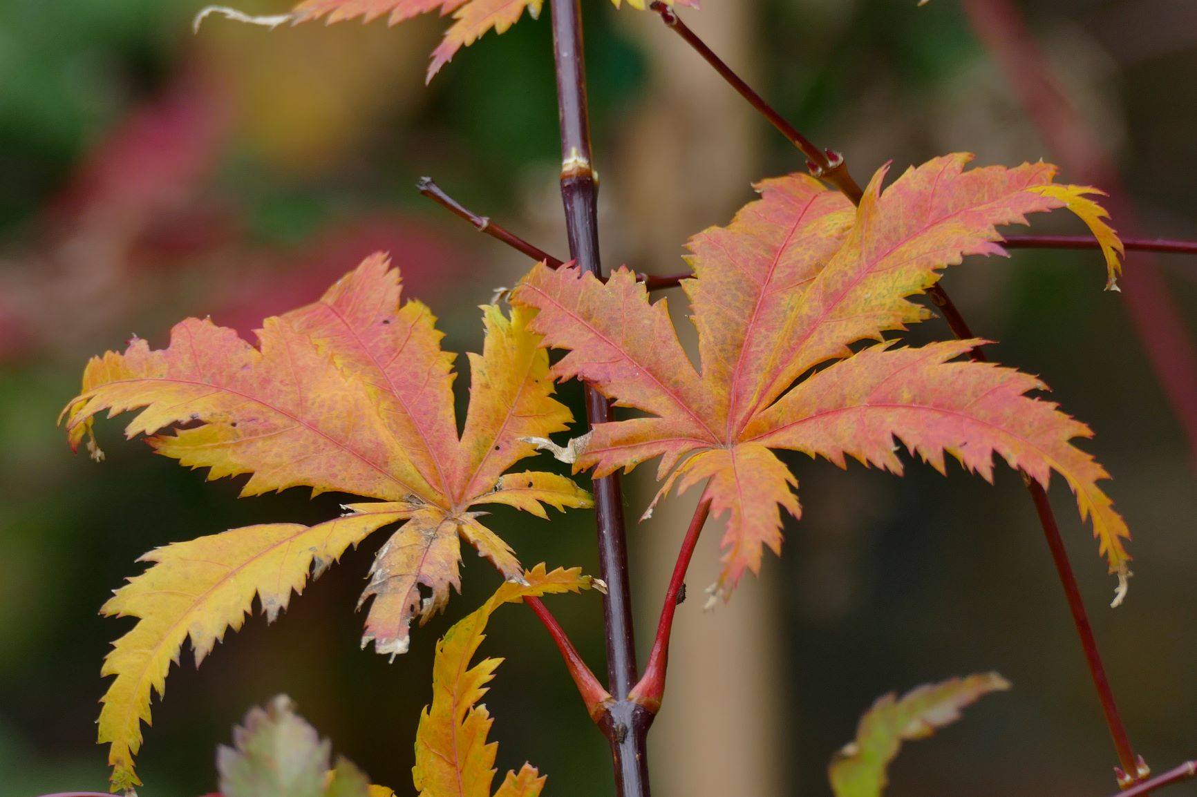 palmatum de graine, d'habitude jaune il est plutôt orange cette année.