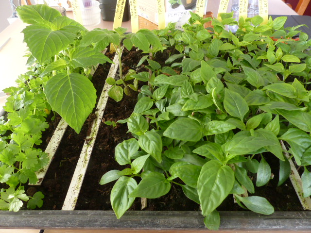 persil et dernières salades plantées mi Mars. Il en manque déjà 4