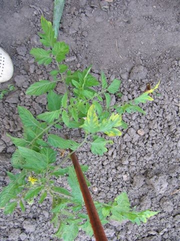 Les feuilles des tomates jaunissent - j'espère une carrence plutôt que le mildiou (peut-être trop optimiste) ! Les QQ végètent, les haricots et les choux se font manger par les limaces - je traite ce pb en même temps que je mets de la BB !