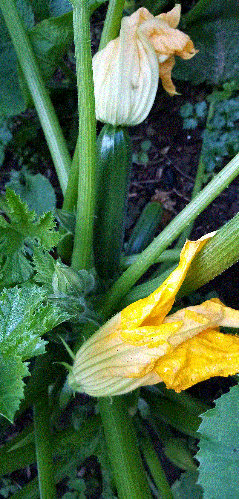 Les deux premières courgettes pollinisées Les tomates continuent leurs croissances Les poivrons également
