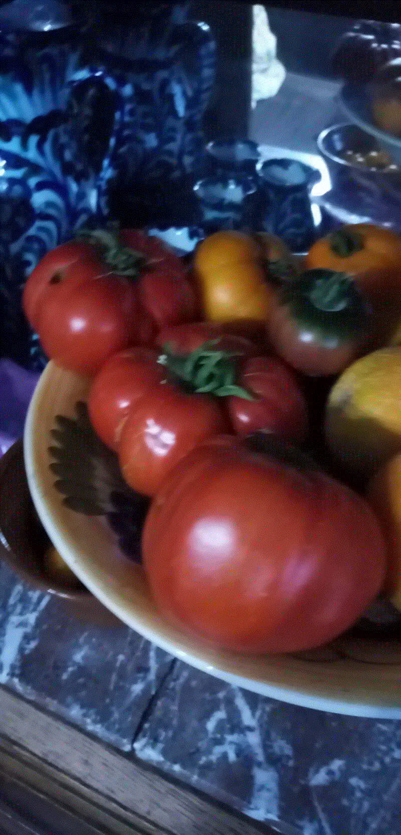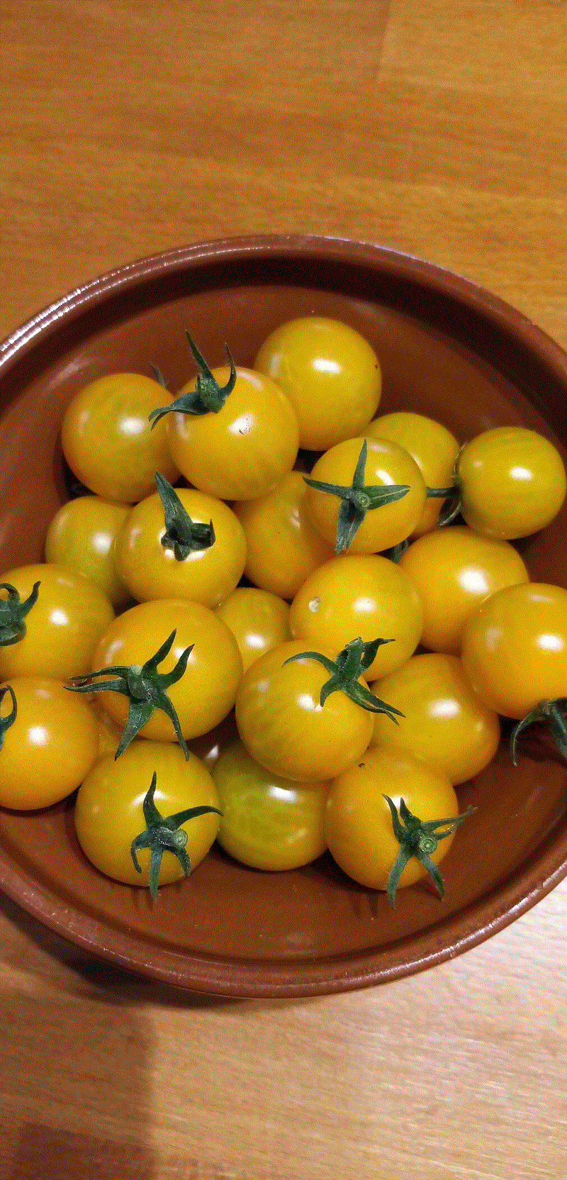 Cette fois, ça y est, nous en sommes au plus fort de la production en tomates. Les fleurs des bouquets suivants ont coulé, ce sera moins productif d'ici une semaine.