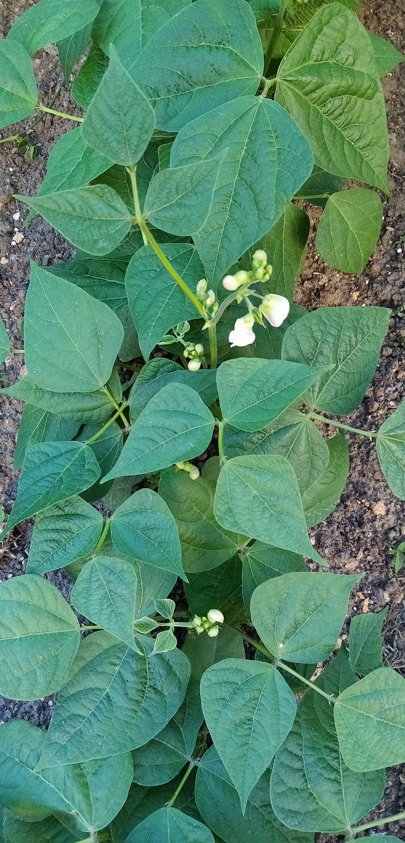 Les haricots verts en fleurs alors que les pieds me semblent encore bien petits.