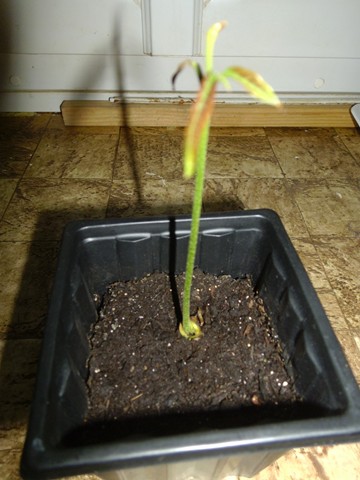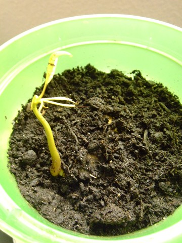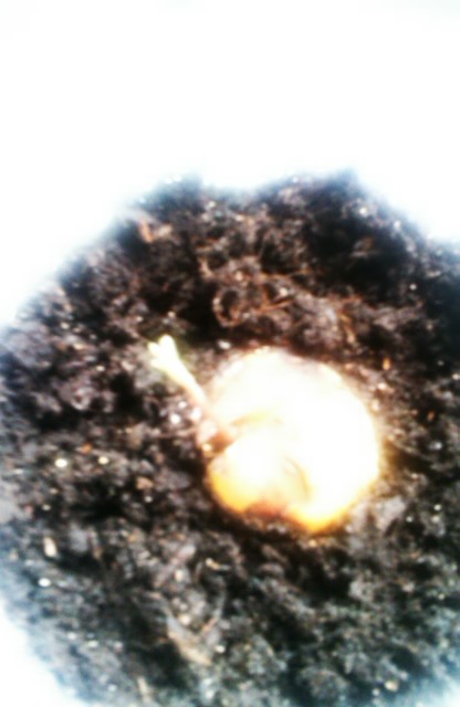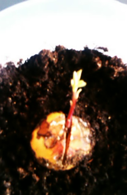 il restait le trou ou etait posé le noyau ,il avait quand meme une pousse et des feuilles de bien 20cm