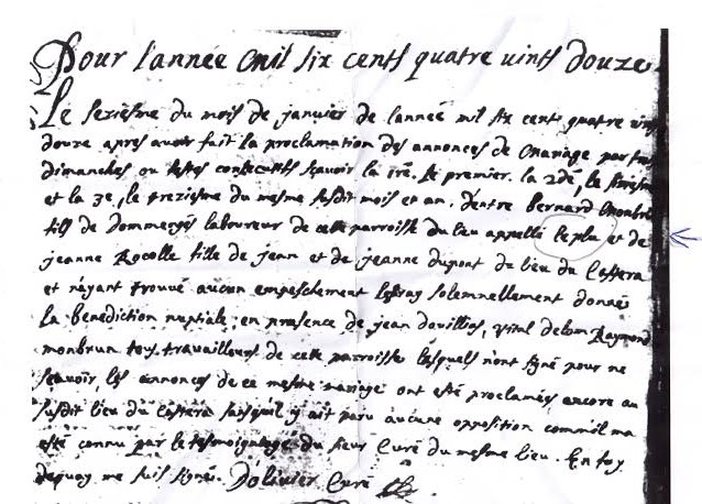 Le curé du village relate le mariage en 1692 du propriétaire qui vivait à l’endroit où j’habite actuellement, avec une fille d’un village voisin.