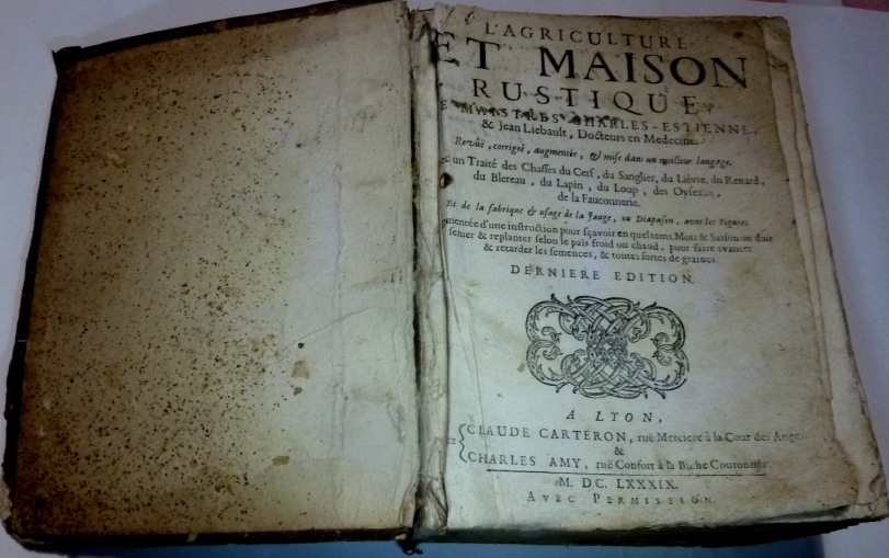 J’ai un livre de 400 pages (voir photo n°1) qui date de 1689, soit un siècle avant, en plein règne du roi soleil, Louis XIV . Je le sors rarement de ma bibliothèque de peur d’en perdre des morceaux, vu son âge