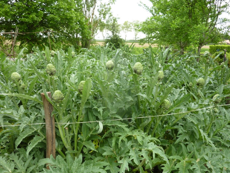 - Pour planter bon nombre de piquets d’acacia (robinier en fait) dans mon carré d’artichauts. Il s’agissait de soutenir les pieds, qui sont devenus bien hauts, produisent beaucoup, et auraient risqué de se coucher en cas de vent.