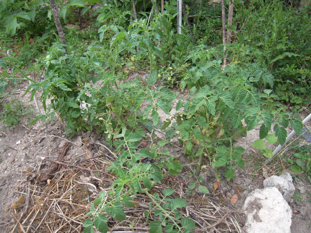 Bon, j'ai un truc bizarre encore jamais eu avant : deux plants de tomate, qui étaient certainement les deux plus vigoureux au départ, qui ont totalement dépéri.