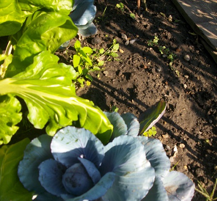 dans mon potager , je cultive selon la méthode dites de contreplantation. Les oignons patates ont poussé entre le plants de tomates. Au pied au frais ,les choux rouges et de Savoie sont à l'aise. Les choux de Bruxelles profitent des épinards rouge, Les carottes également. En lisière les aubergines, plus haute que les poivrons ,qui eux font la ligne des poireaux et les poireaux, celles des haricots. bref ,tout le monde profite de tout le monde, radis, salades etc sont au frais également. pour aujourd'hui: + les pois violet @+