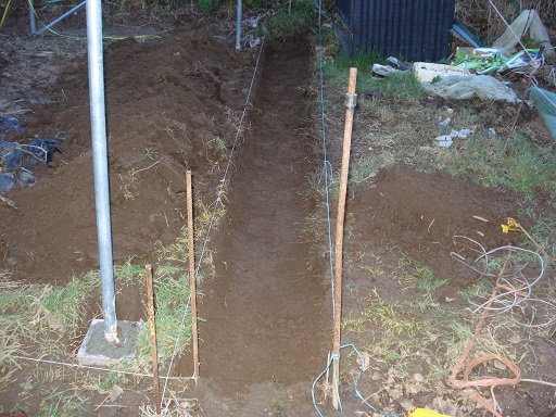 fini de creuser mes tranchées et mise en place des planches sur les côtés de la serre...