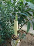 Comptant les traces de 25 feuilles coupées sur Musella lasiocarpa de 4 ans, je vais la planter en serre. Cela l'encouragera à pousser et à fleurir ? j'espère.