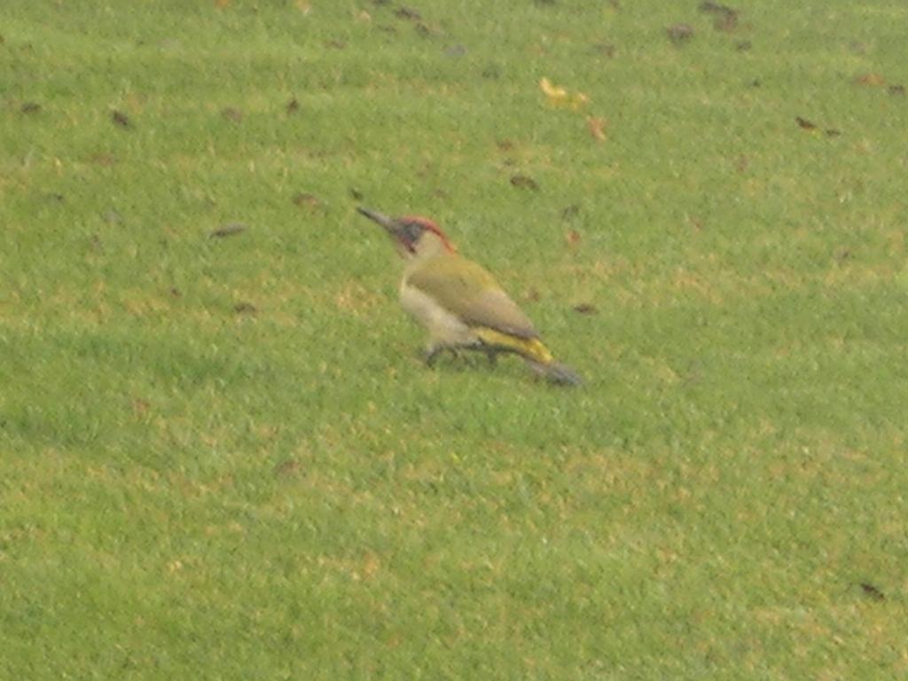 voila un pic vert,il vient de tempsen temps sur la pelouse à la recherche de ver de terre