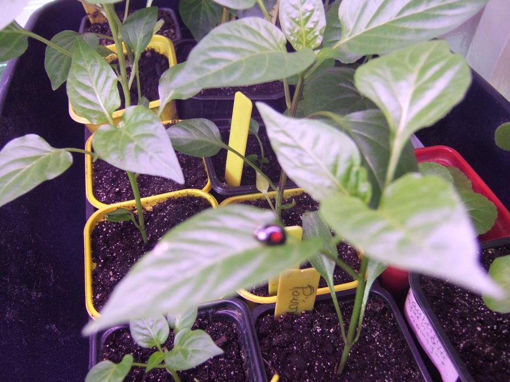 Et aujourd'hui voilà ce que j'ai trouvé sur mes aubergines et mes poivrons ou il y avait quelques pucerons. Elle a bien déjeuné.