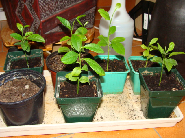 Sinon, dans la nurserie, les graines de citron et de pomme commencent a germer.