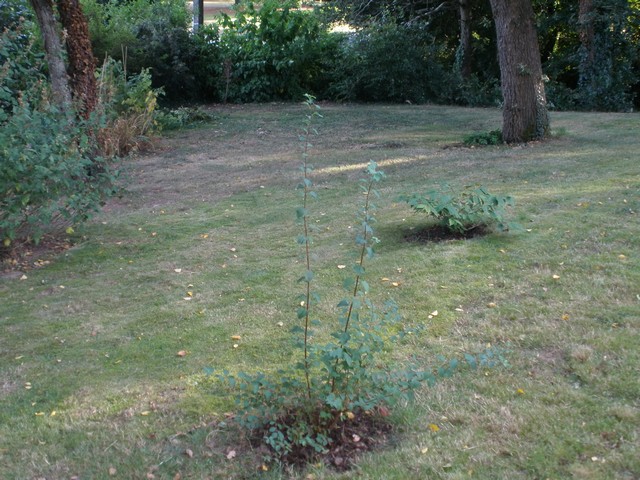 Mon coin horreur est exposé au soleil jusqu'au milieu de l'après-midi. Au départ c'était un grand trou qui a été comblé par des souches des arbres coupés (le terrain était un bois auparavant) Il y a beaucoup de racines et c'est très sec, un gros chêne y déverse des tonnes de glands chaque année. Cet automne je vais me contenter de le cacher un peu de la vue de la maison par quelques plantations un peu plus haut. Je vais cogiter sur ce que je vais en faire cet hiver et ce sera mon gros chantier du printemps 2014 (tros sec, impossible de le travailler en ce moment)