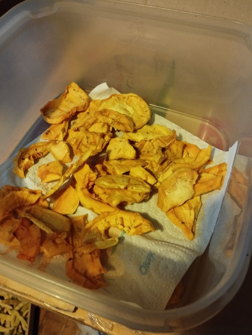 J'ai essayé de faire sécher un kaki pelé et suspendu, pdt 2 jours tout va bien mais le 3e les moucherons se sont invités au festin et au bout d'une semaine le kaki moisit