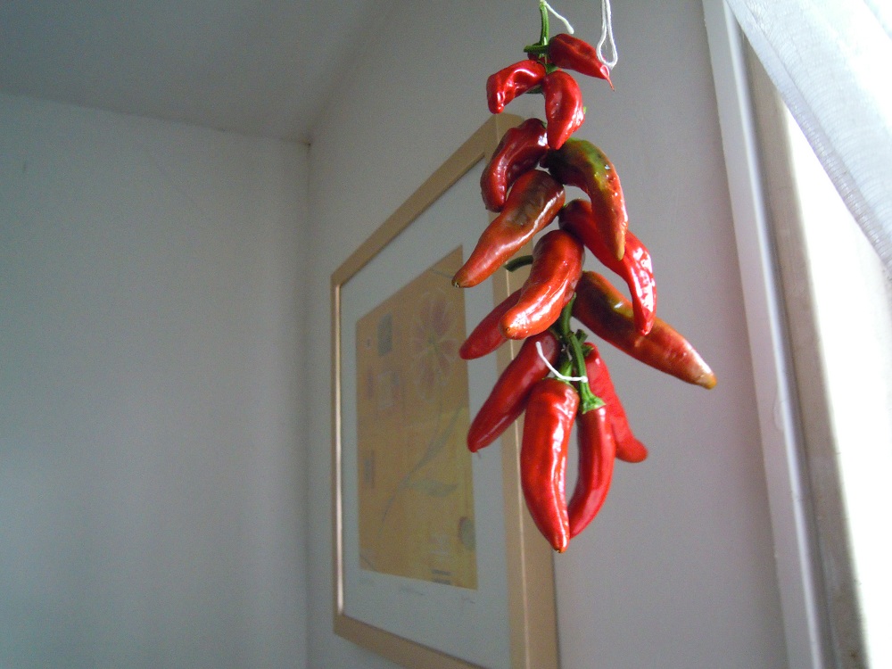 Sinon, première récolte de piments goria mis au séchage, il était temps, il ne me reste qu'un demi petit pot en sec : Et une OR 117 difforme que j'ai oublié de prendre en photo et de peser avant, elle fait 510g découpée : Sinon, une betterave prélevée, un mini concombre et deux courgettes. Les haricots verts arrivent, cette fois, les récoltes d'été commencent.