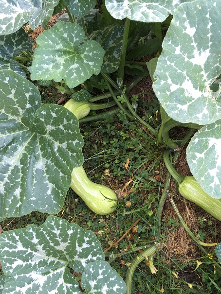 Un petit aperçu de ma courge longue de Nice. Après la photo, j'ai mis des briques sous les 2 plus