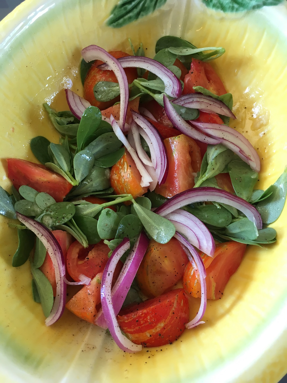 Rien que du jardin !! tomates, pourpier et oignons violets !!