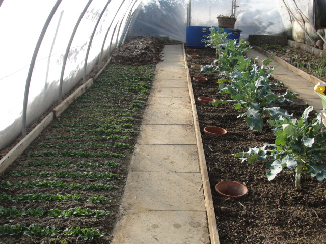 au centre: les brocolis aux pieds desquels j'ai semé des lignes d'épeautre le 13 novembre