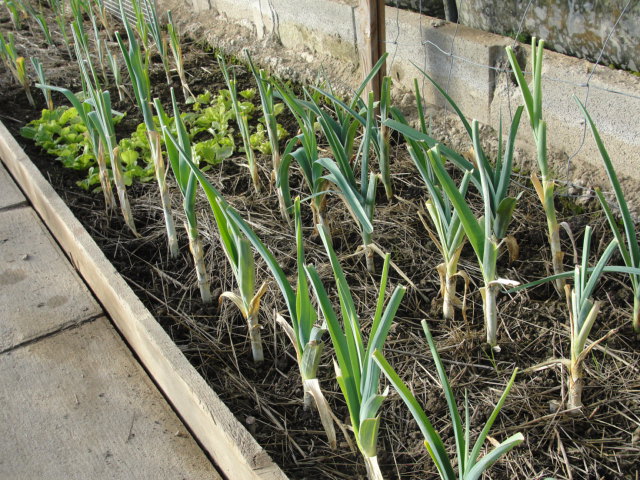 - sur les petits poireaux qui entourent le reste du semis de salades