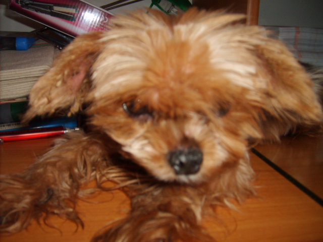 Daisy, c'est la mini-york, de chez mini !!! recueilli à 4 ans (sa maîtresse voulait la donner au premier venu!) je suis allée la chercher pour la faire adopter....elle est évidemment restée!!10 ans! elle avait été "achetée" dans un élevage (elle a un pédigree mais délaissée aussi!).