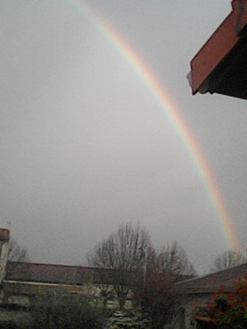 il a plu une petite averse qui a bien mouillé la végétation . on a eu un superbe arc en ciel