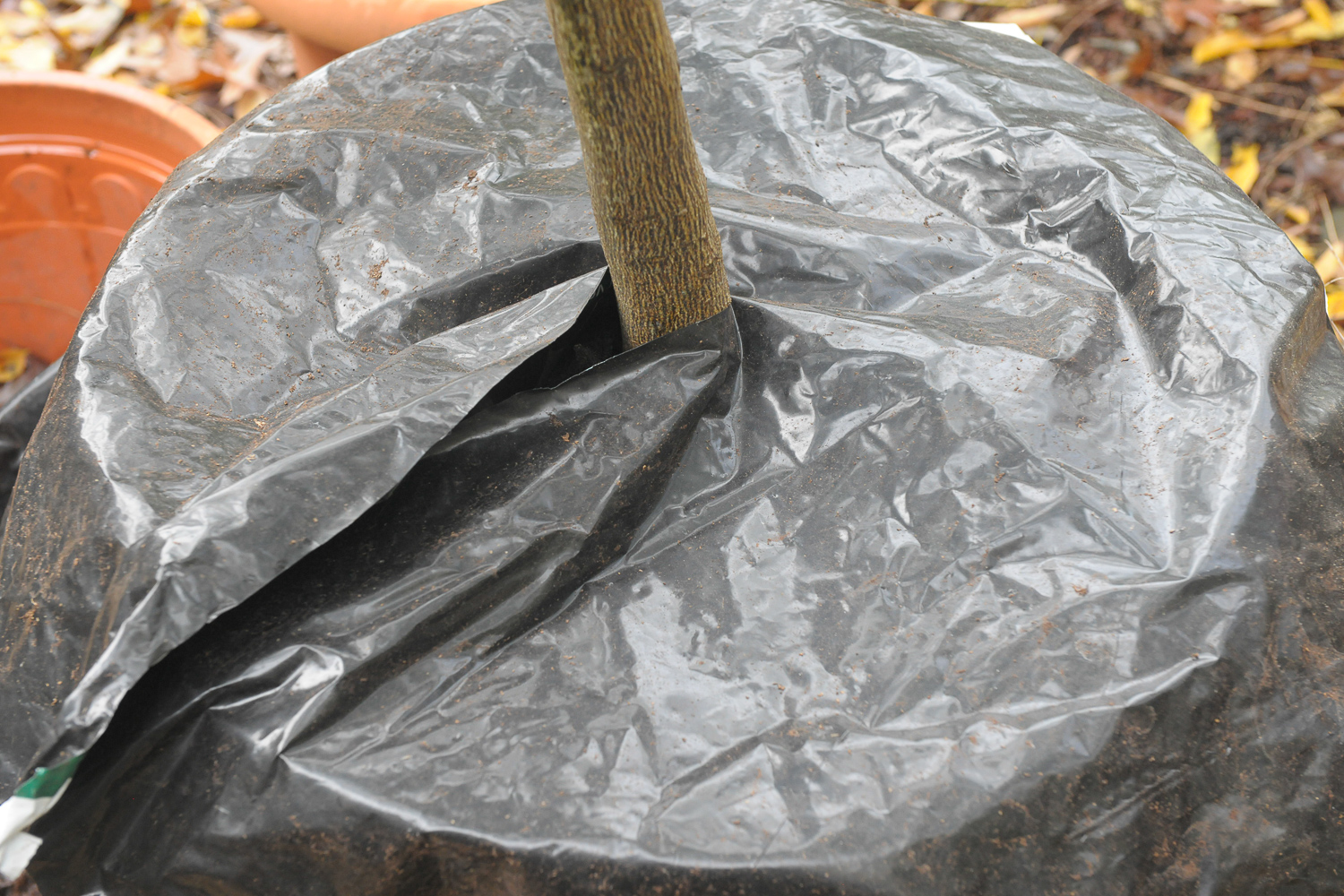 Je ne possède pas de garage pour l'abriter donc j'ai du le remettre au même endroit mais je lui ai mis une sorte de bâche autour du pot.