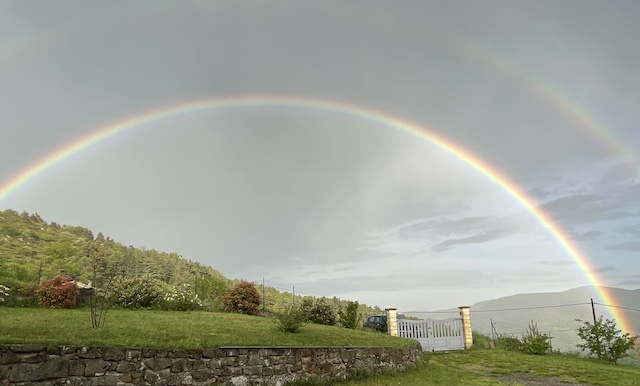 Ce soir on a eu un petit orage, ça a fait quelques mm. On a eu un bel arc en ciel.